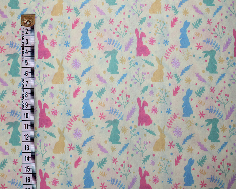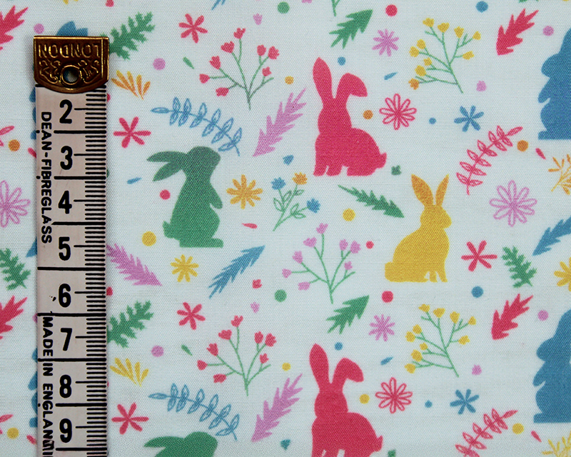 Tags: Polycotton, digital print, bunny fabric, rabbit print, MP fabric, sewing, crafting, DIY projects, Easter fabric, lightweight fabric, cute fabric.