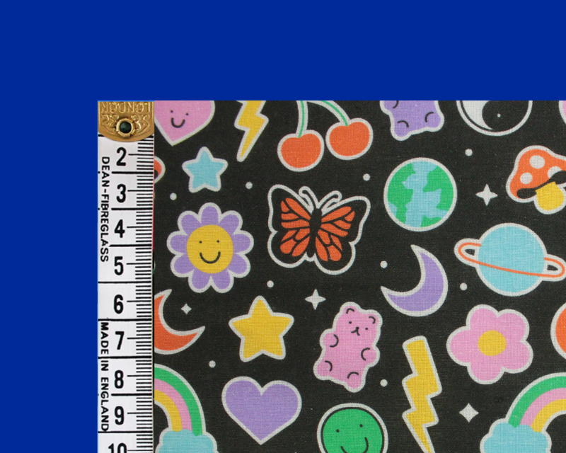 A wonderfully exuberant and out-of-this-world Cotton fabric from the Little Johnny brand, featuring a vibrant cosmic joy print that combines the magic of the universe with a bold, uplifting energy. Crisp, breathable and a joy to sew, this 100% Cotton is perfect for children's clothing, casual wear, quilting and any make that deserves a print that is as joyful as it is galactic.